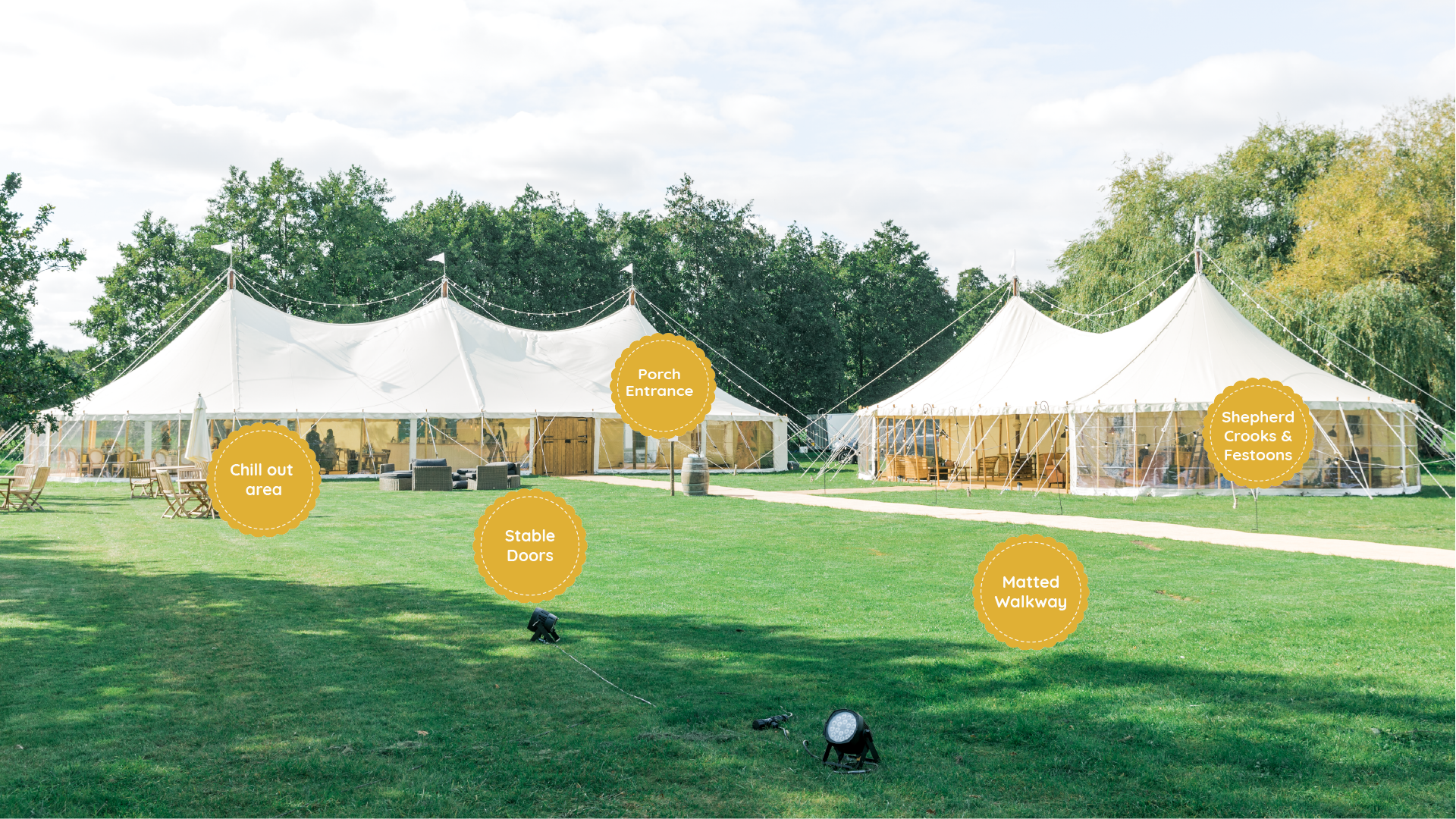 Line the way to your marquee with our giant sheperds crooks and festoons to add an element of elegance to guide your guests to the marquee.