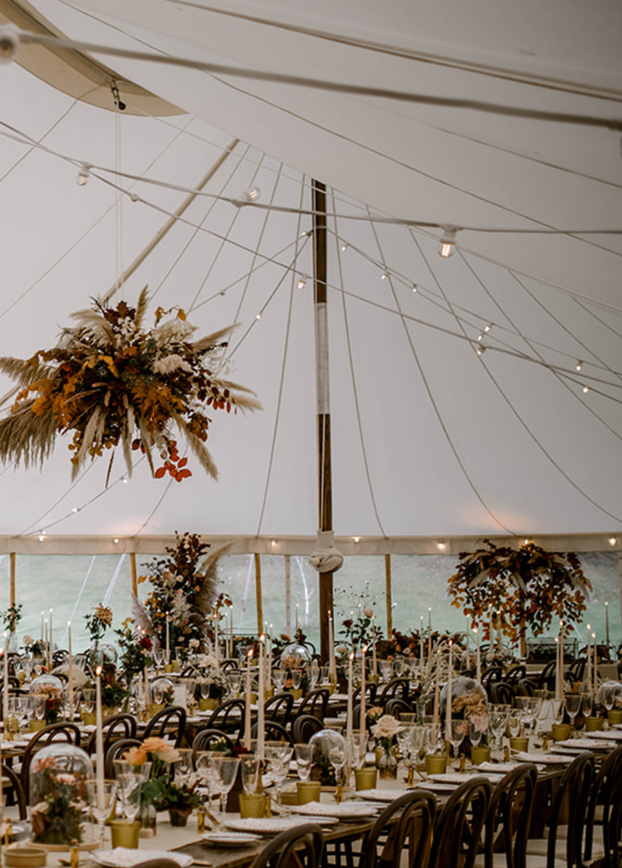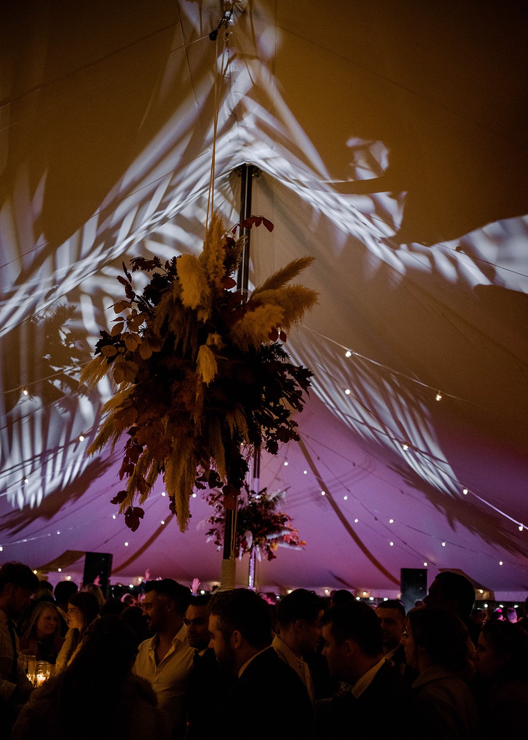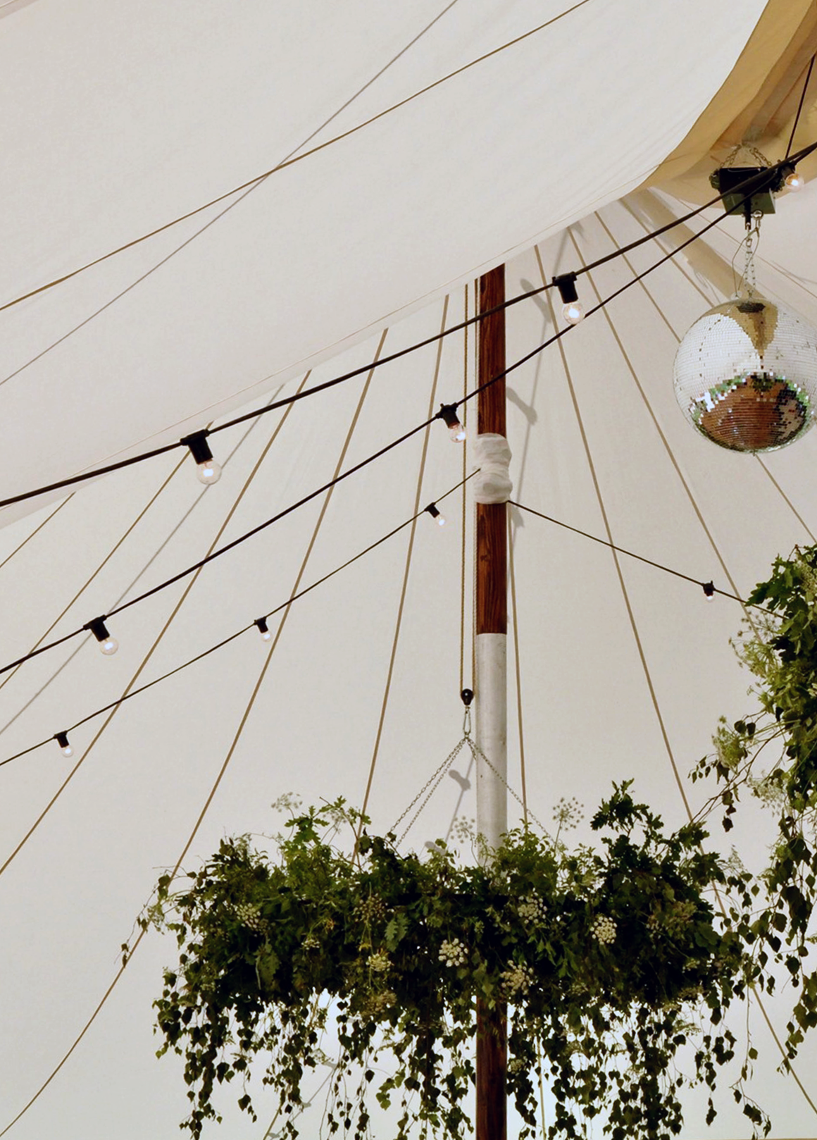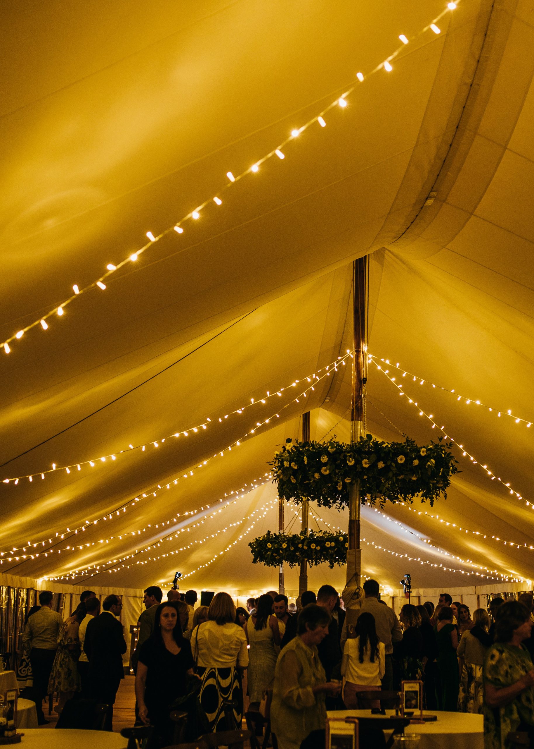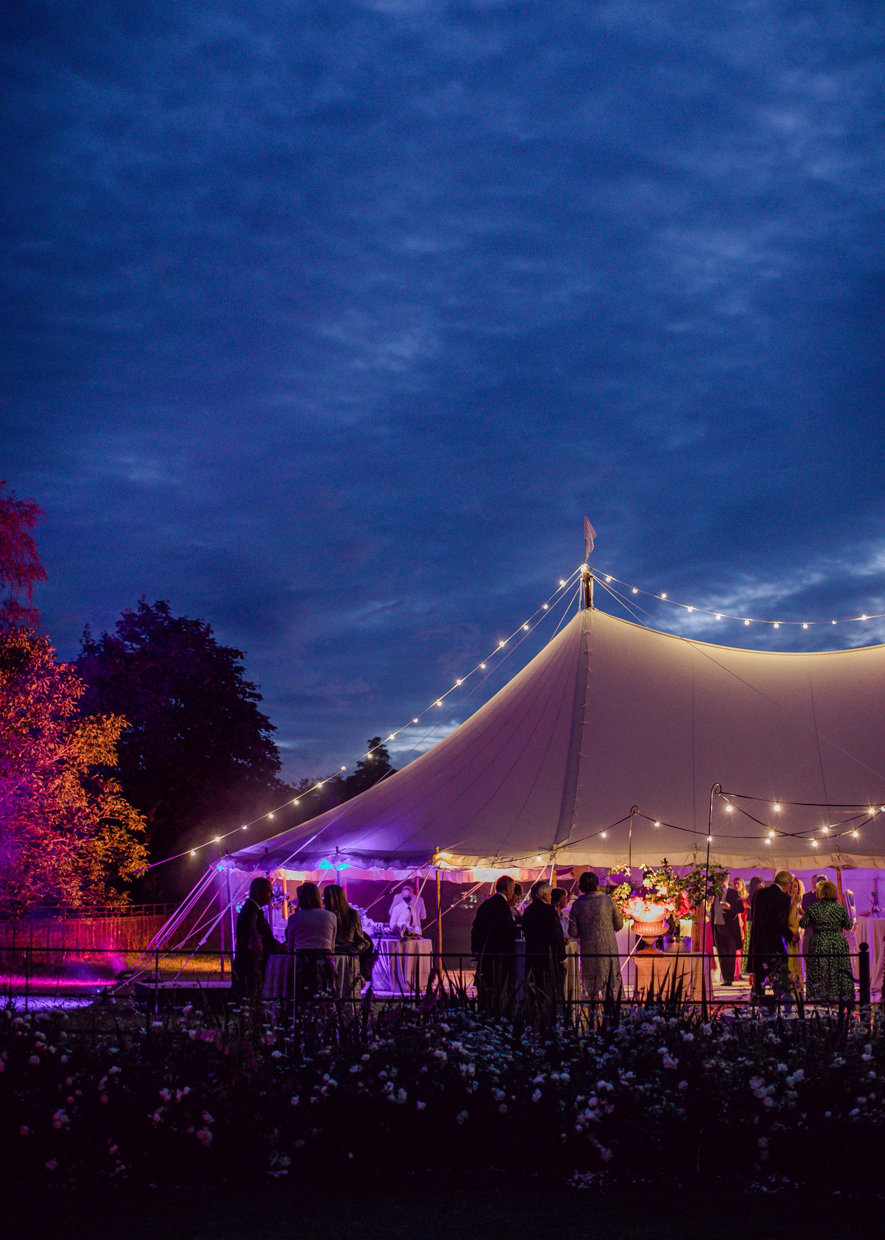 Match the colour scheme of your big day with a pop of light on the roof of the marquee.